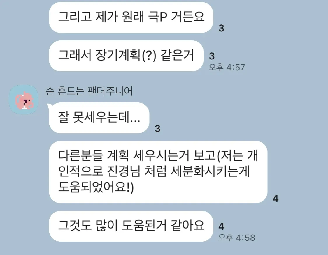 그 어떤 행동이든 시작을 했으면 루틴화 (관성화) 시킵니다. 이게 가장 중요한 순간입니다. 그냥 뇌뺴고 하게 합니다. 여기서 도움이 되는 것은 동료애 ㅋ 생각보다 타인과 같이 한다는게 동기부여 되는 듯 합디다?
