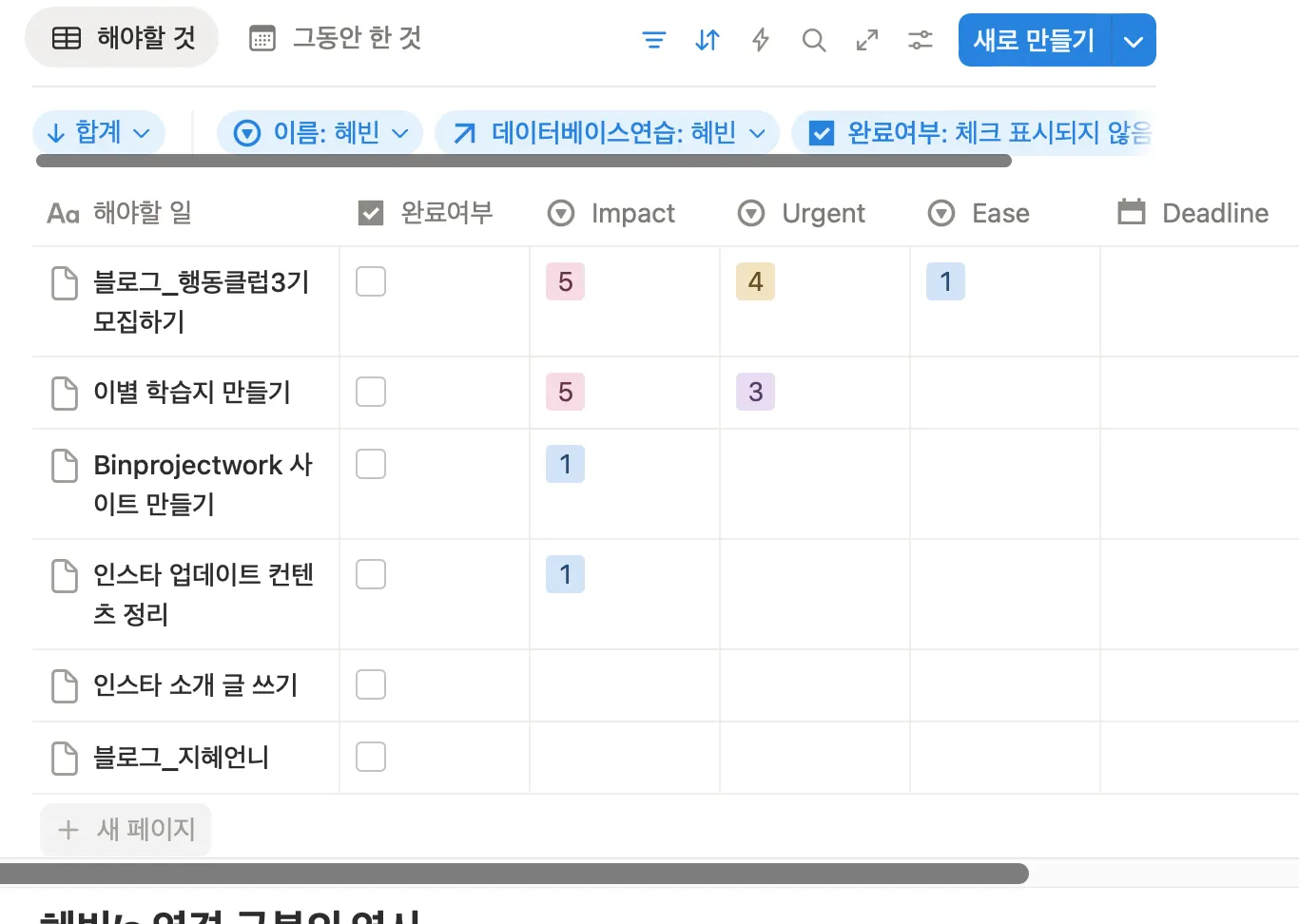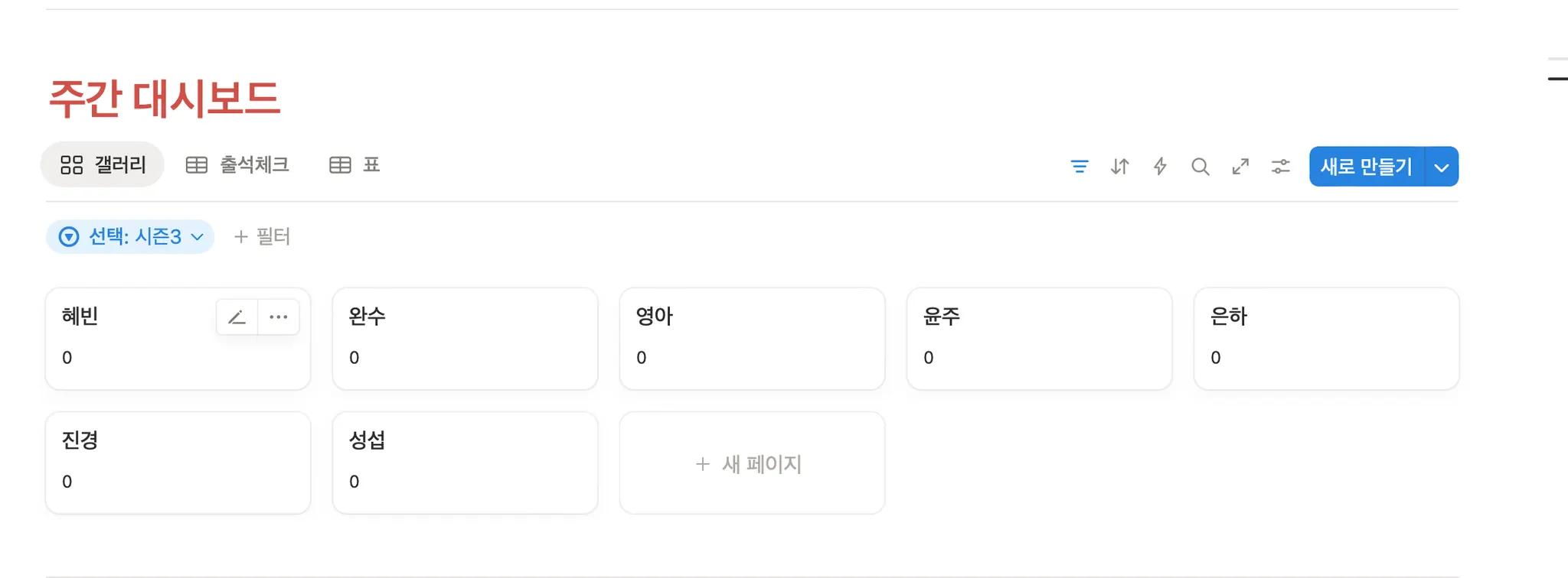 당장 오늘 / 이번주 해야할 일만 하나씩 할 수 있도록 서로 감시 및 동기부여