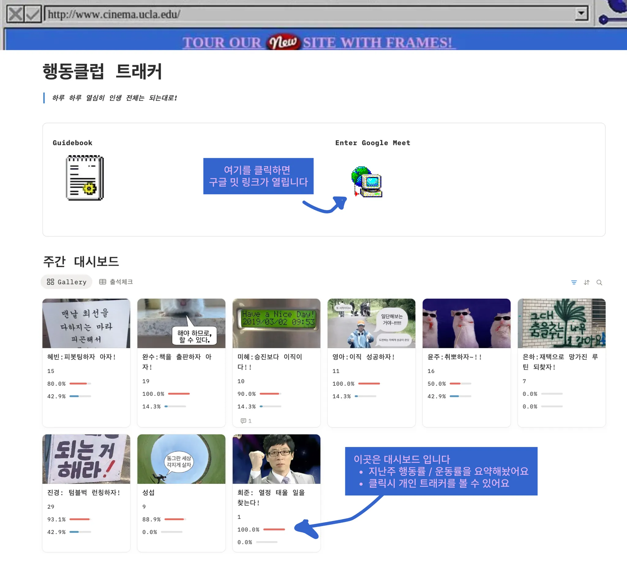 매주 월요일 각 기수 시간에 맞춰 구글 밋으로 들어옵니다.
