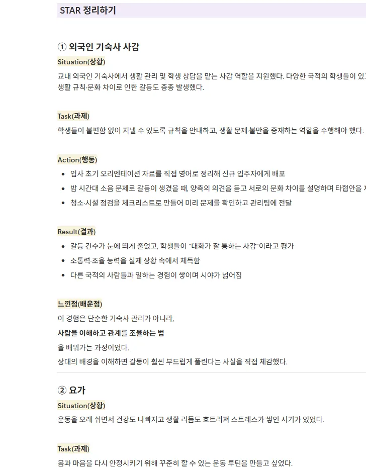 흩어져 있던 경험을 다시 구조화하고, 이력서와 자소서를 반복적으로 수정하며 완성도를 높임