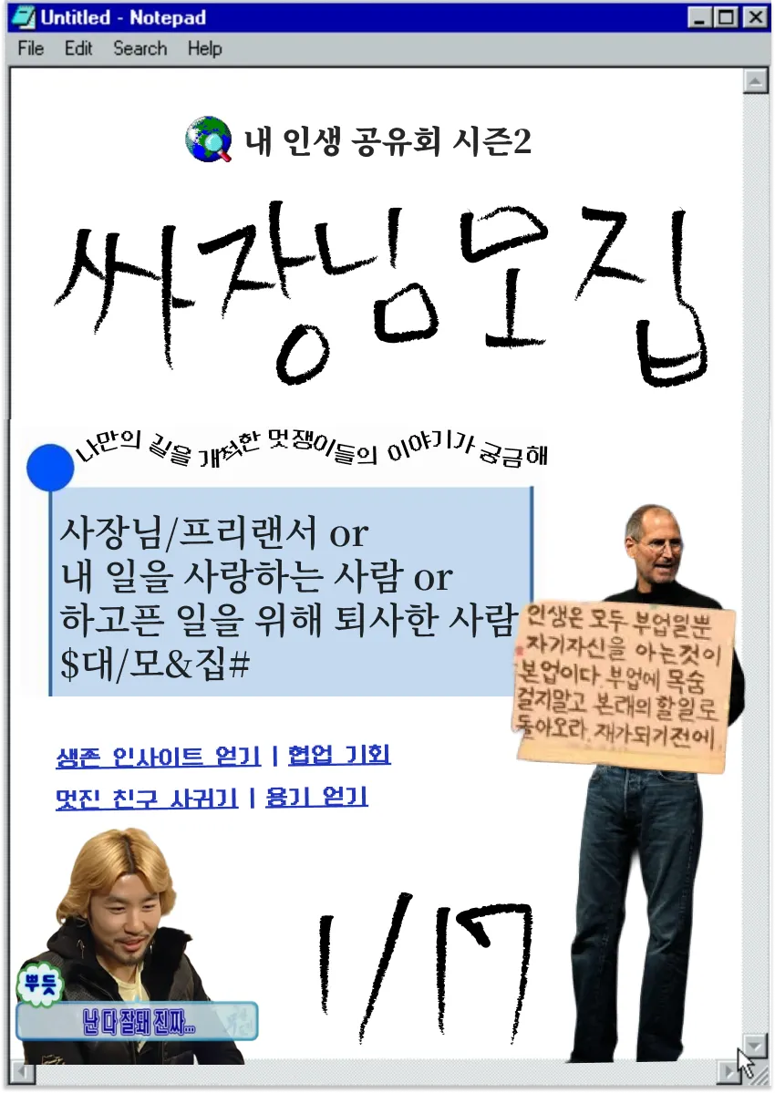 (포스터엔 회사없이 생존하는 사람들이라 했지만, 본인 일을 사랑하는 그 누구라면 다 참가 가능함 ㅋ)